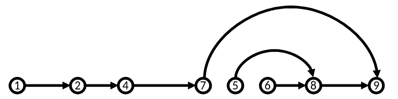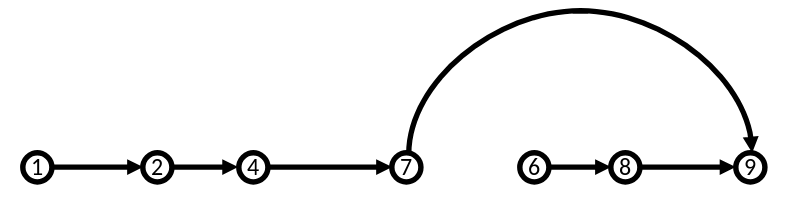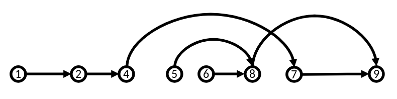Now there are only two jumping arcs instead of three. The writer can further try to eliminate arcs from the graph completely by checking if they are absolutely necessary. For example, 5 and 6 might be two examples that support point 8. But are two examples really necessary? If not, then get rid of 5: